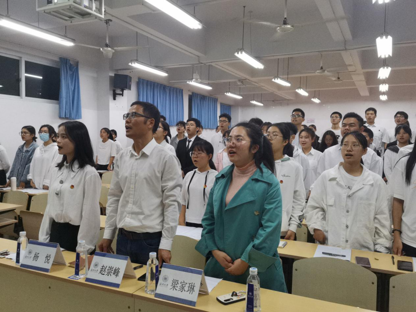 开班仪式在庄严的国歌声中拉开序幕。前任团副杨悦代表老生干部发言,她首先由自己的经历总结出团学工作不仅需各司其职,也需相互信任。然后她提出日后工作中应注意完善内部建设、推陈出新活动、拓展对外交流、精益求精工作,并为新一级团干提出要调整心态、不断学习、摆正位置三点建议。随后,新生学员代表刘杭发言。他提出员工干部在思想方面应坚定自己,自觉增强自身的归属感、责任感和使命感;学习工作方面应做到合理规划,找准自己的定位,做到学习与工作并行。他希望员工干部之间能增加彼此间的交流,为人处世要谦和有礼,遇到矛盾要及时沟通。组织部部长邹婷宣读培训班考核条例和内容。最后,由团委指导老师梁家琳讲话并宣布培训班正式开班,希望全体成员能够共同努力、共同经营、共同成长、共同获得、共同创造创美好生环。