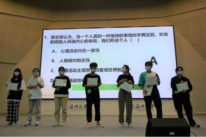 本次竞赛共分为两轮答题。第一轮为“开心十连击”,即随机分好组后轮流上台答题,根据选手分数在每组中选择分数高的相应几名选手晋级第二轮。紧张刺激的比赛正式开始,选手们斗志昂扬、沉着答题,选手根据抽签顺序轮流答题,你追我赶,难分上下。第二轮为“一站到底”,即题的难度也随之攀升,题型也更加丰富,单选、多选。选手们丰富的知识储备、沉着的气质,敏锐的判断,不时赢得台下阵阵掌声与喝彩。场上的比赛激烈胶着,场下助威团此起彼伏,报告厅热闹非凡。