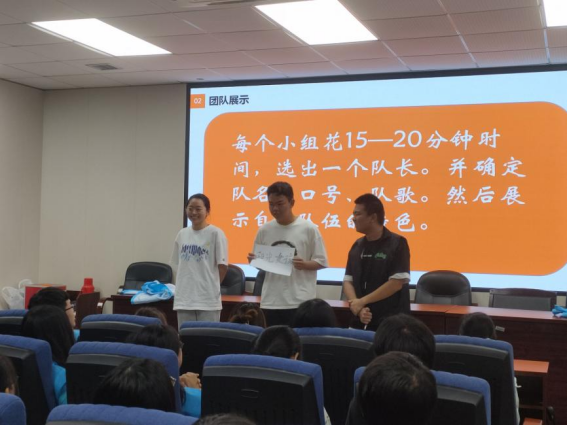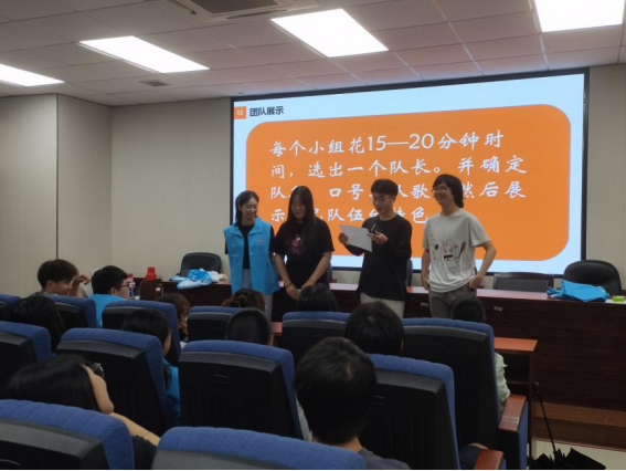 在主持人的带领下,同学们先玩了一个小游戏缓解紧张氛围,欢乐的气息渐渐弥漫开来。之后又进行了经典的“队长说”的游戏,同学们随着主持人下达的指令快速反应,很快就调动起全场气氛。当然游戏也有惩罚,做错指令的几位同学也大胆上台表演才艺,多才多艺的同学真是令人大开眼界——歌曲、配音样样拿手。通过打乱分组的方式将同学们分为六组并选出队长、口号、队歌进行展示,此时就展现出同学们对社会娱乐热点的精确把握,充分显现了当代老员工紧贴社会现实、运用社会舆论的精神。最后以“串词”的小游戏结尾,表现出同学们丰富的词汇量、巧妙的表达能力和快速的应变能力。整个破冰活动都充满了欢声笑语,拉近了成员之间的距离,为后续展开活动打下了良好的基础。