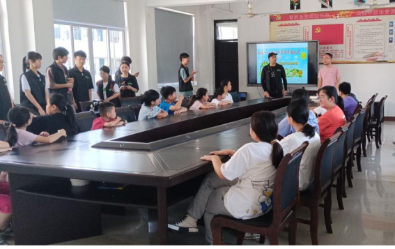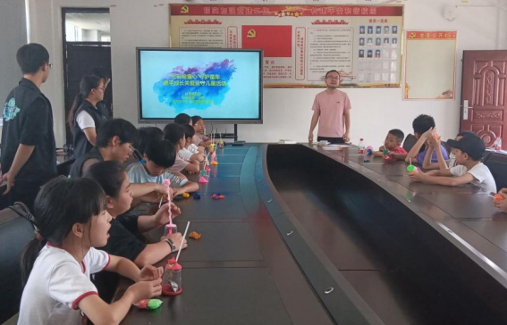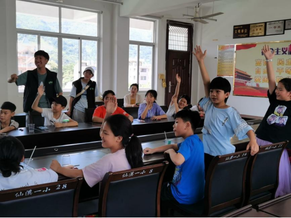 7月12日上午,在仙溪镇第一小学少年宫开班仪式正式拉开序幕后,“清源”暑期社会实践队队员们与小朋友之间开始了破冰之行。首先是团队介绍,小朋友们与团队和队员们之间有了初步的了解。接下来在愉悦的气氛中进行了“传字”的小游戏,小朋友们排成一列,在背后以手写的方式传递字。通过团结合作完成传递,极好地调动了在场小朋友的积极性和热情度,大家都积极参与,在一片欢声笑语中打破彼此间的生疏,从陌生到熟悉、从扭捏到活跃,增进对彼此的认识与了解。后续的“你画我猜”游戏中,气氛更是达到了高潮,小朋友们的非常热情与兴奋,笑声与抢答声更是响成一片。这次游戏让小朋友们与队员们之间都更加熟稔,大家的关系更为融洽,也极好地培养了默契度与团队意识,为后续活动的顺利展开打下了坚实基础。