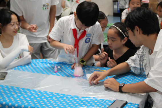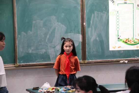 上午八点半,在孩子们的憧憬之下,小课堂准时开课了。每一张脸蛋都认真地望着,每一双手都端正地放着,孩子们认真地学习着深色蔬菜与浅色蔬菜,学到了平衡饮食的方法。学习之余,更是有他们迫不及待进行的小实验来缓解压力。孩子们一个个都小心翼翼地把色素滴加到含有小苏打的锥形瓶中,再缓缓倒入食醋,顿时都绽放出了一个个七彩斑斓的小喷泉。随后,孩子们围在一起,并被分成若干组,有红萝卜组、白萝卜组等,进行了萝卜蹲游戏。游戏接近尾声之时,我们也给胜利的队伍颁发了小零食作为奖励。最后,孩子们积极地举手上台来分享这三天中学习到的知识内容,也分享了实验过程中的注意事项,为这次的活动画上了一个句号。