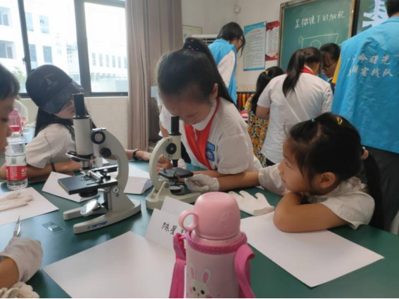 小朋友们在显微镜下观察到的一个个细胞将会在他们的心里埋下科学的种子,显微镜课堂上学到的知识也会让小朋友们的世界多一些缤纷色彩。“纸上得来终觉浅,绝知此事要躬行”,理论知识与实验过程的完美融合,给暑期社会实践添上了浓墨重彩的一笔,也给这些小朋友们带来了科学的启迪。“生命曙光”实践队带领小朋友们进行显微镜下的细胞观察,共同探索细胞的奥秘,共同遨游于生命的微观世界。