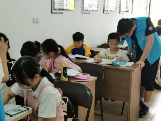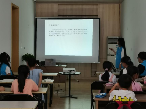 在课程正式开始之前,按照惯例,实践队成员们带领小朋友们进行了一段时间的练字学习和作业指导。在短暂的休息过后,课程就正式开始了。李家怡老师先从塑料制品引入,通过互动问答的方式,讲述了塑料给生产生活带来的便利和危害,并通过一则小故事《塑料袋漂流记》引出了授课主题—白色污染。李家怡老师鼓励小朋友们结合自身的生活经验,思考白色污染带来的一系列危害。随后,家怡老师通过情景问答的方式,指出塑料袋在生活中的普遍性,引入塑料的替代品的话题以及各个国家针对于白色污染推出的一系列政策措施,提倡大家在生活中要控制塑料制品的用量,减少白色污染。