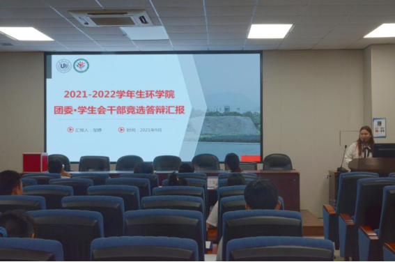 会议的第三项议程是宣读换届选举办法、宣读监票人和计票人名单。宣读完毕后就是主席团和部长的竞选。每位候选人都准备充分,精心制作了竞选答辩PPT,给大家带来了一场视觉和听觉盛宴。各位候选人分别从工作总结、竞选优势、岗位认知、未来工作计划等多方面进行了汇报,各位主席团候选人们也认真地回答了考核团提出的问题。