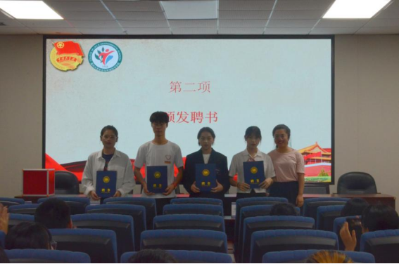 紧接着是会议的第二项议程——颁发聘书。辅导员梁家琳老师给全体主席团成员和各部门部长们颁发了聘书。在过去一年里,主席团成员们和部长们都认真履行了自己的职责,积极进取,追求卓越,并且高效率高质量地完成了各项工作。