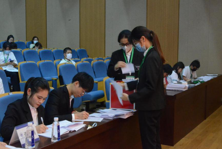 下午三点整,大会全体会议正式拉开帷幕。在嘹亮的国歌声后,大会审议并通过了2020-2021学年员工会工作报告、员工会章程、员工代表选举方法以及2021-2022学年团学主席团名单。经过大会选举,共产生9名员工代表大会委员。