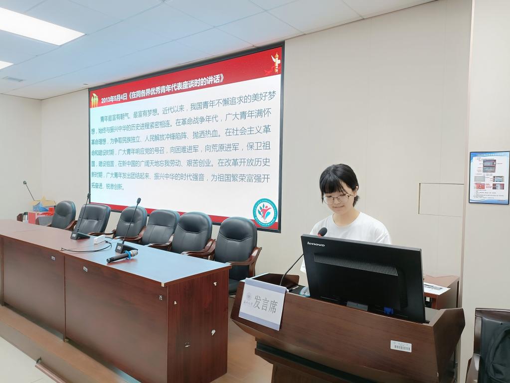 活动开始,各部门部长、副部长依次上台,或是深情或是严肃地向同学们朗读习近平总书记关于青少年员工成长的重要要求摘录。一幕幕讲稿排列展现在干事们眼前,一句句振奋人心的话语启迪干事们的思想。从2012年11月29日的《中国梦,复兴路》开始,到2021年7月1日《在庆祝中国共产党成立100周年大会上的讲话》结束,砥砺奋斗、艰苦前行的思想种子已在干事们的心田里播种,勤俭劳动、感恩助人的美德品行已成为干事们的行动指标,发展自身、贡献社会的意志品格已为干事们的青春增亮了一抹底色。新时代的接力棒已经递交到了当代青年的手上,“我们的明天需要青年人接着奋斗下去,一代接着一代不断前进。”活动后,各个干事也收到了线下学习的任务和相关推荐资料,便于其更加深入地了解习近平新时代中国特色社会主义思想,并使其精神思想受到新一轮的洗礼升华。