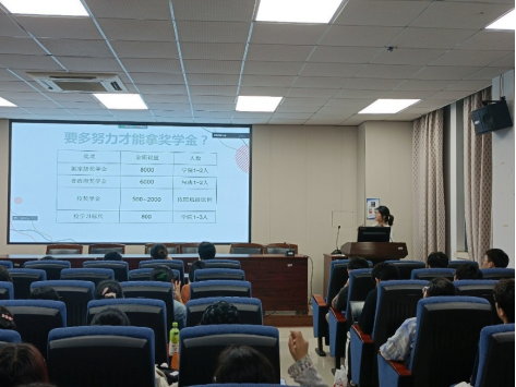 首先进行分享的是赵青青学姐。学姐以追光者的故事开始,从“学习好品质”“学习好习惯”“学习好方法”“学习好资源”四个大方面来分享。他告诉同学们应当胸怀大局,有梦想,心系祖国,志存高远;也要自信开放,要对自己有积极的心理暗示,鼓励参加学科竞赛,突破自己,但前提是要有一定的专业基础,不能盲目自信;最后要学会迎难而上。赵学姐通过人物举例告诉同学要挑战自己,不畏困难,才能创造新高度。第二位是黄家怡学姐。学姐先阐述了自己的学习生涯,她在自己学习生活中就不断鼓励自己、突破自己,她相信每个人都有突破的潜能;同学们也要学会勇敢,去尝试自己没有尝试的,比如体验社会,这样才能在日后帮助自己更好地适应社会。第三位是杨雨晴学姐,学姐开场简单,以轻松的方式为我们分享,后续以植物学为例进行讲解,帮助同学们更好地习得学姐的学习方法;最后是裘元园学姐,学姐为我们分享什么叫“低成本高回报”的学习方式,分享了许多学习和生活上的干货,帮助同学们发现学习之中可以找到的“隐藏资源”,利于同学后续提升自己的学习效率。