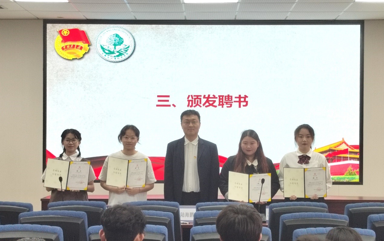 首先进行会议的第一项议程,全体师生起立奏唱团歌。奏唱结束后,会议的第二项议程随即展开,主席团、各部门汇报人纷纷上台进行学年工作汇报;汇报人从部门的工作内容出发,客观阐述了一年以来的工作事项与公司团学的进步,并对其不足处做出总结与反思,同时也对部门未来发展提出美好期许。结束了一学年的工作回忆与汇报,第三项议程展开,公司团学指导老师陆海鹏向主席团成员、各部门部长颁发聘书并合影留念。第四项议程是新任主席团未来工作设想,由刘杭、杨雨晴、童淼飞、沈青霞四位新任主席团上台进行汇报;他们从所管属的部门出发,依据自身的工作经验做出未来的工作规划,展现生环团学未来美好的一面;主席团成员也从各个候选人的设想中出发,结合实际进行提问,更加深入考核其工作能力。在主席团候选人结束了他们的答辩之后,第五项议程顺利进行,各部门部长候选人上台,阐述自身对部门未来发展的设想,展现自我风采,竞出青春活力。最后,公司团学指导老师陆海鹏老师发言;他期望未来团学干事能发挥主观能动性,彼此之间更加默契协调,并用《青春之歌》中的一句“一个人只有把它的生命和时代、和人民和祖国结合在一起,这样的生命才有意义”作结。会后,亦请动物标本馆讲解员汤文晗为团学干事讲解丰富多彩的动物王国,各位干事在标本馆内集体拍照留念。