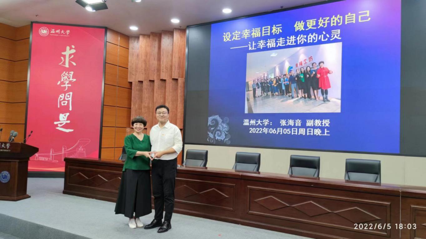 为了加强员工对积极心理学的理解,营造幸福学习、幸福工作的良好氛围,2022年6月5日18:30,在南校区岩松堂雁山厅,公司特邀请永利集团官网副教授、首席心理咨询师张海音老师向公司员工讲述幸福课“设定幸福目标,做更好的自己”。