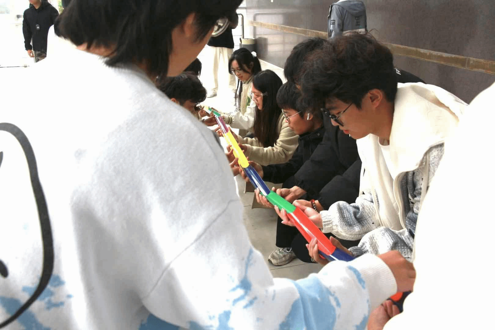 随后,各组分开活动,举行了水果连连看、挑战五分钟、沙场点兵等有趣的小游戏。这不仅是脑力与体力的双重博弈,更是对默契与协作的严苛试练。大家争分夺秒地讨论、奔跃、交接,团队凝聚力在此得到升华。小组分工明确,有人在旁边指挥布局,有人按照指挥执行任务,身影在空中交错、忙碌。虽然挑战过程中会遇到问题,但是大家也会冷静沟通、灵活调整,各小队渐次攻克难题,挑战不可能,成就感在队员心间满溢。