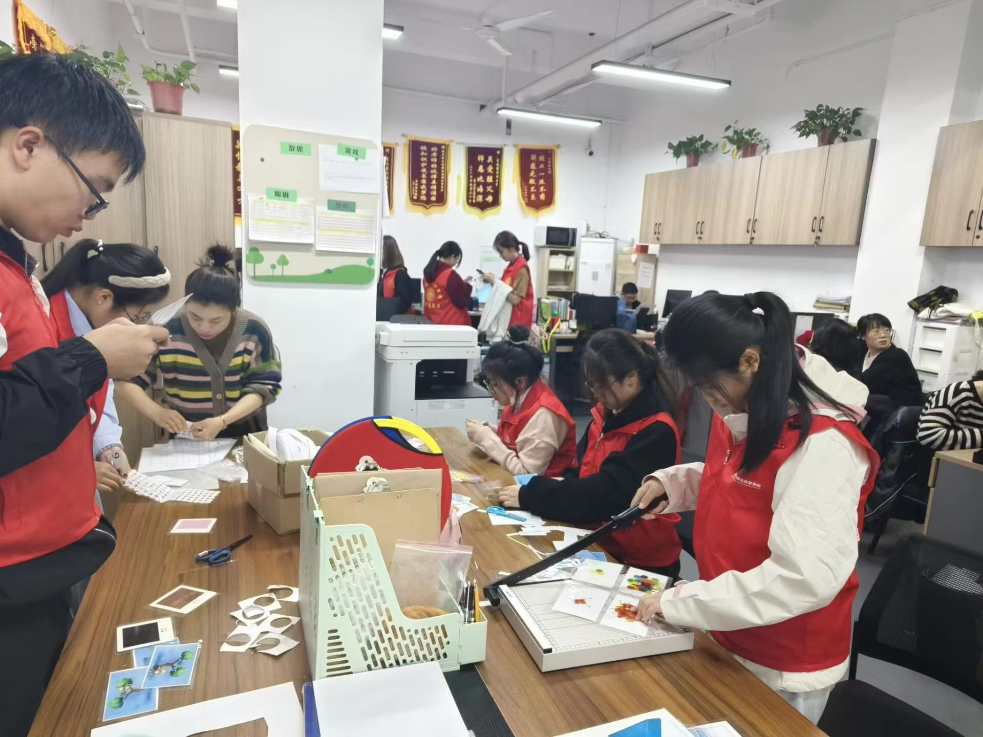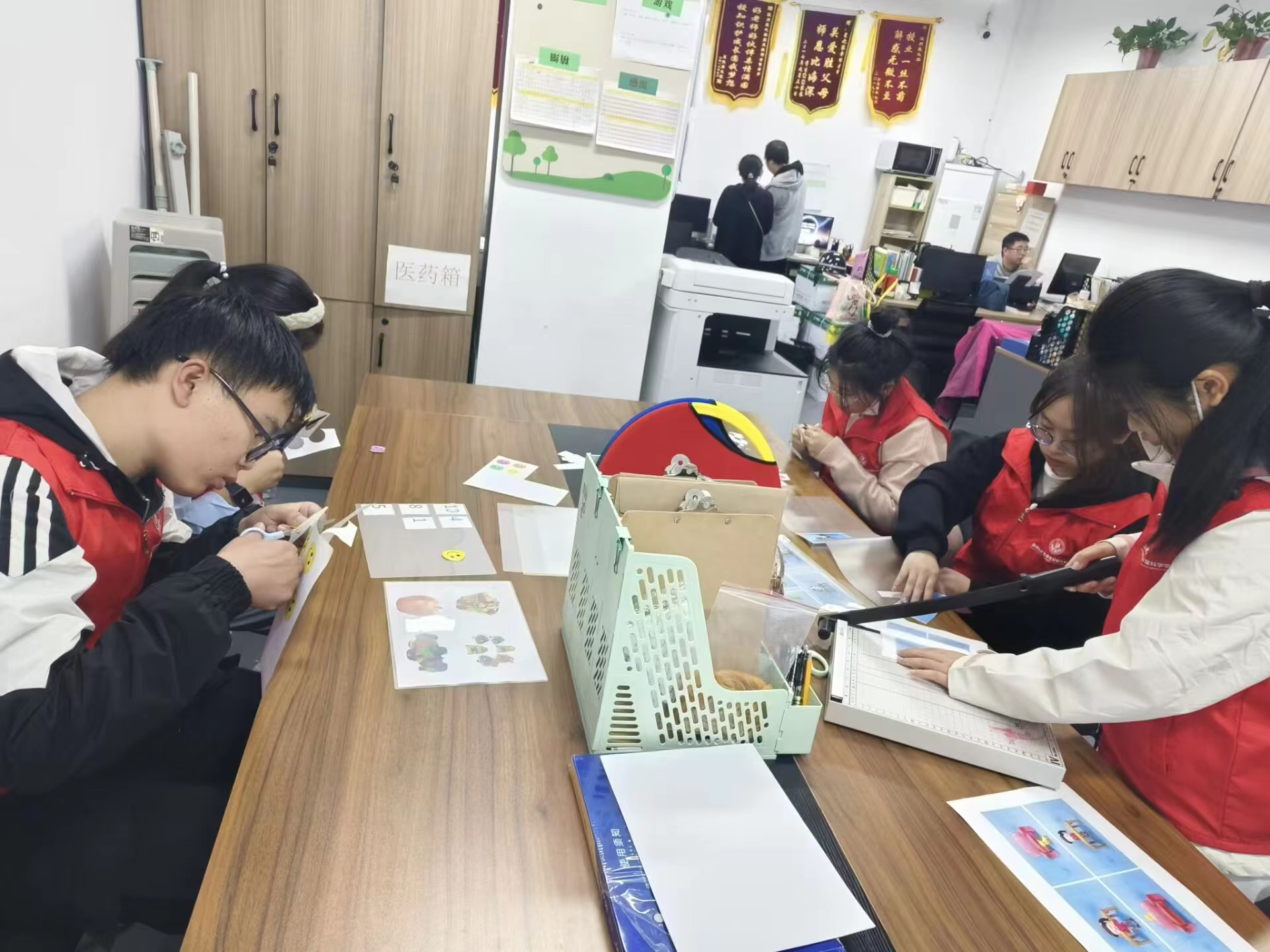 2023年11月22日中午,yl永利集团官网登录“生命曙光”青年志愿者服务中心的成员前往星之家培训中心进行教具制作活动。