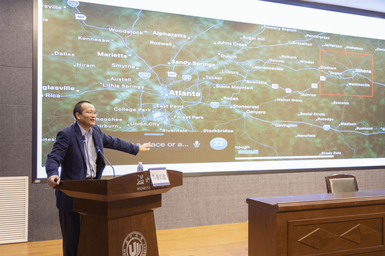 讲座始伊,蔡后建教授深情的回忆了他在母校的求学时光,并围绕自身职业生涯规划,将自己的求学旅程以世界地图的方式进行展示,阐释了自己如何从一名专科生到终身教授的艰辛历程。蔡教授希望,新时代老员工要根据自己的梦想树立远大志向,制定长期目标坚持做事,尽力而为并抓住每一个机遇。随后蔡教授对自己的研究内容进行学术讲解,并表达了对同学们出国读研的支持与鼓励。