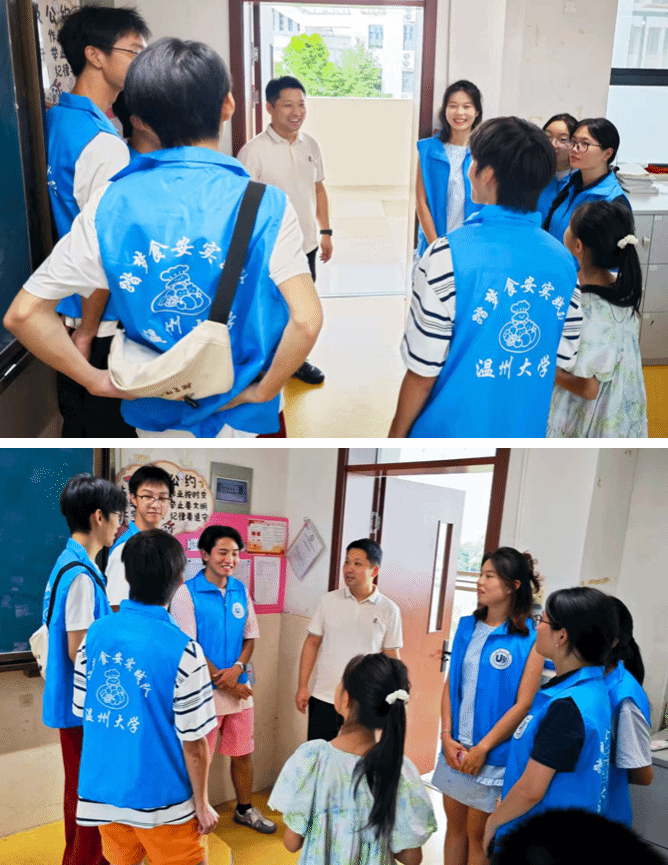 7月18日,副经理陈斌斌前往茶山附小,探望了踏梦食安实践队。该实践队主要在小学宣传食品安全知识,还会前往菜市场进行调研等工作。陈斌斌副经理查看了队员们在小学开展食品安全宣传的资料和成果,听取了他们关于菜市场调研情况的汇报。他对队员们积极传播食品安全知识、关注民生问题的做法表示肯定,希望队员们能继续发挥专业优势,让更多人了解食品安全的重要性,同时在调研过程中不断提升分析和解决问题的能力。