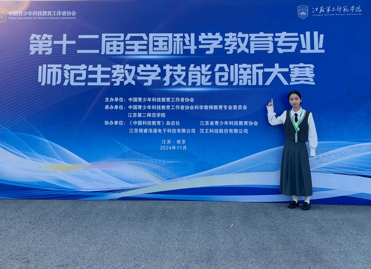 11月1日至3日,由中国青少年科技教育工作者协会主办,协会科学教师教育专委会和江苏第二师范公司承办的第十二届全国科学教育专业师范生教学技能创新大赛在南京成功举办。公司共有24名选手参加决赛,共获得7个一等奖、8个二等奖、9个三等奖,获奖数居全国参赛院校第二,一等奖获奖人数居全国参赛院校第三。其中,yl永利集团官网登录21生科吴程慧同学在南旭阳老师指导荣获一等奖!
