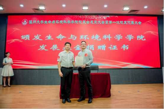 会上,公司党委书记姜海燕与捐赠员工举行签约仪式。公司党委副书记庄兴忠为基金捐赠代表夏三忠、戴建博、郑健以及2000级环境科学本科班代表颁发了发展基金捐赠证书。