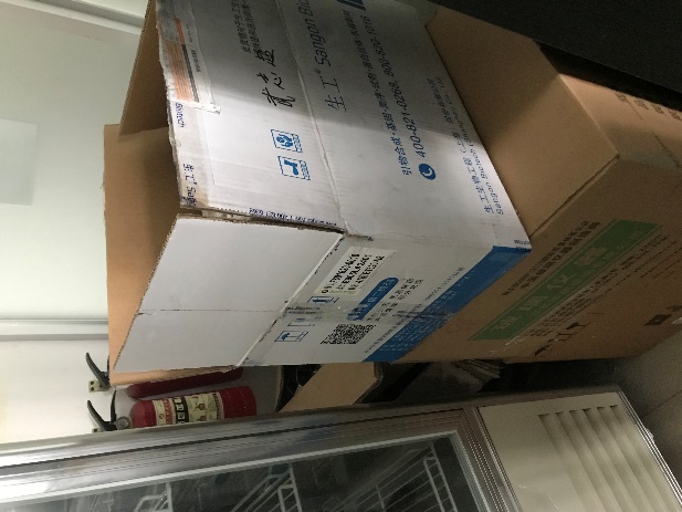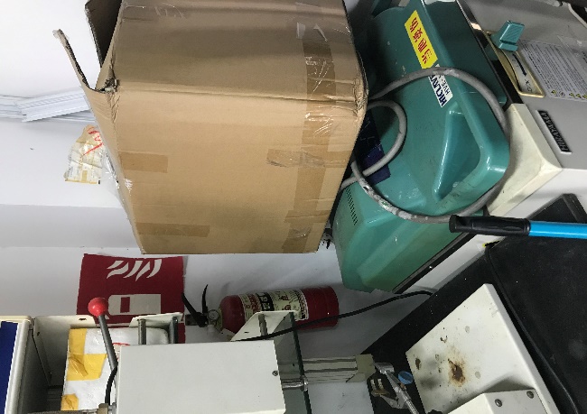 灭火器被纸箱遮挡 桌面卫生有待提高 |