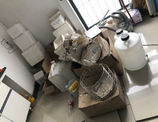 5.1.4实验室消防通道通畅,公共场所、通道不堆放仪器、物品 5.3.4无废弃物品(如纸板箱、废电脑、破仪器、破家具等) |