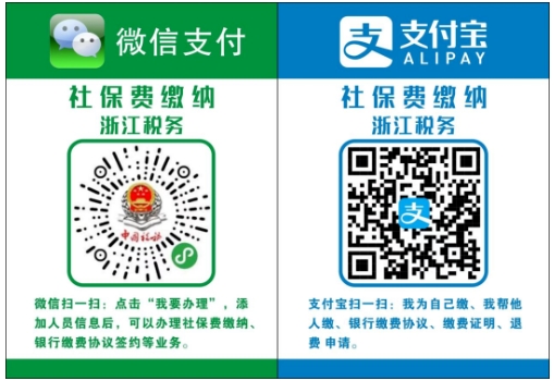 (3)缴费方式:去年已经参保的老生,可以直接缴费。通过微信、支付宝扫一扫下图二维码或搜索“浙江税务社保缴费”,在“社保费缴纳”模块,可以为自己或帮他人缴纳。证件类型不是居民身份证的员工可选择“其他证件缴费”。