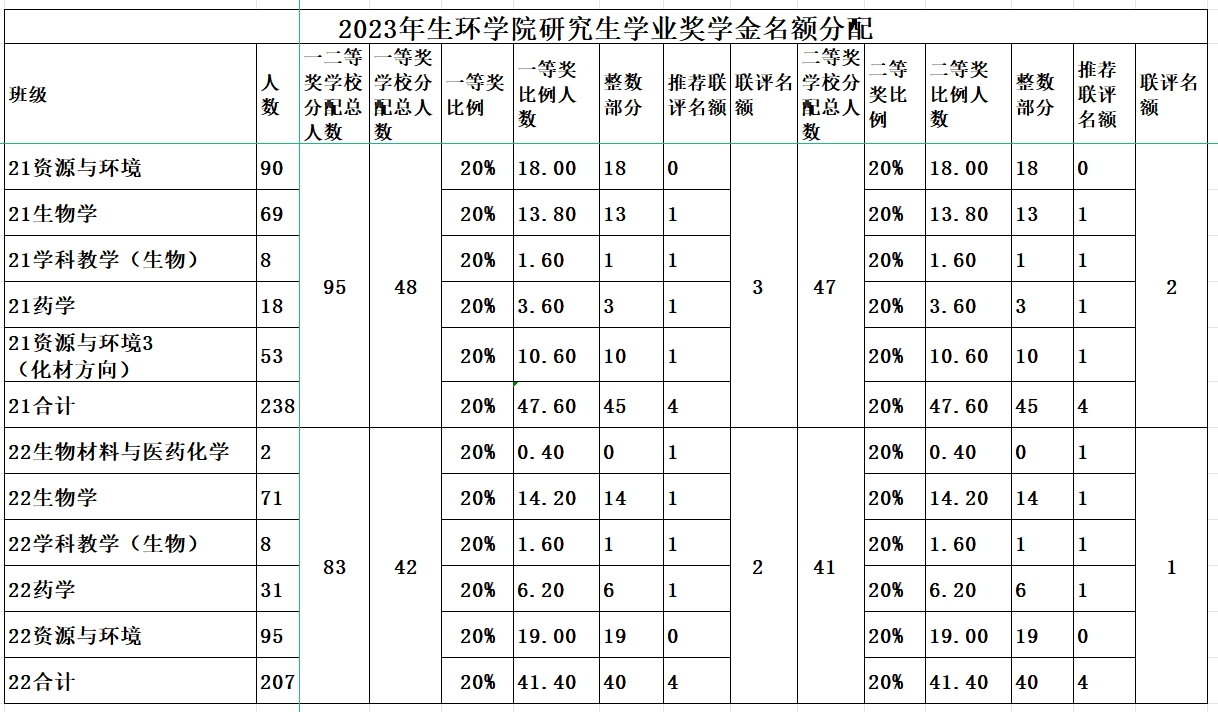(2)综合学业奖学金:2021级、2022级硕士研究生