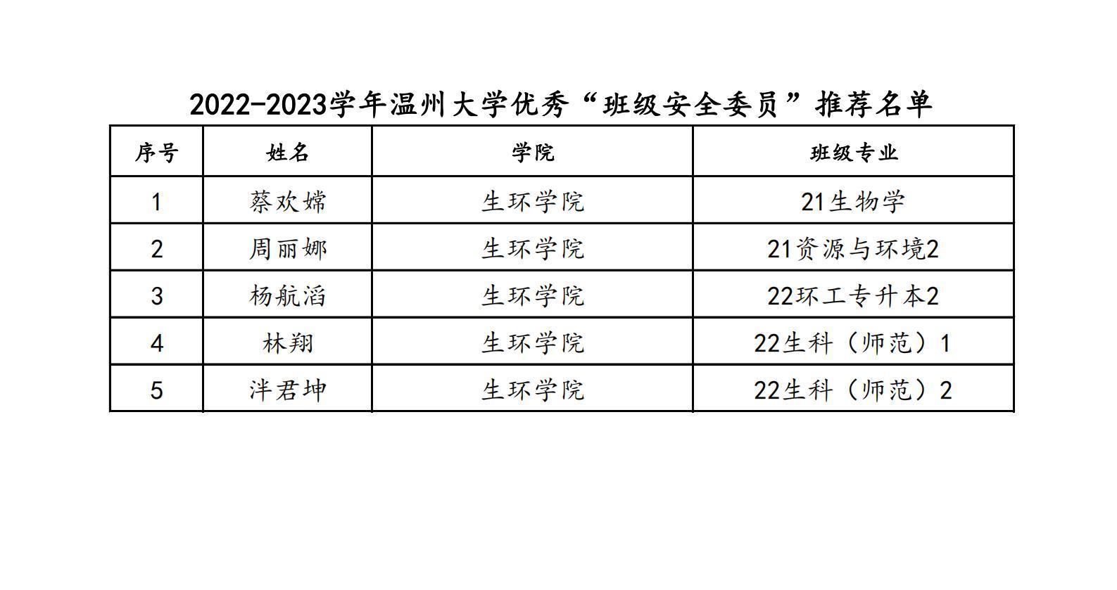 根据《永利集团官网班级安全委员工作制度》以及《关于开展永利集团官网2022-2023学年优秀“班级安全委员”评比活动的通知》工作要求,经班级安全委员个人申请、公司评选、公司审核通过,推荐蔡欢嫦等5位员工为2022-2023学年永利集团官网优秀“班级安全委员”。现将推荐名单公示如下:
