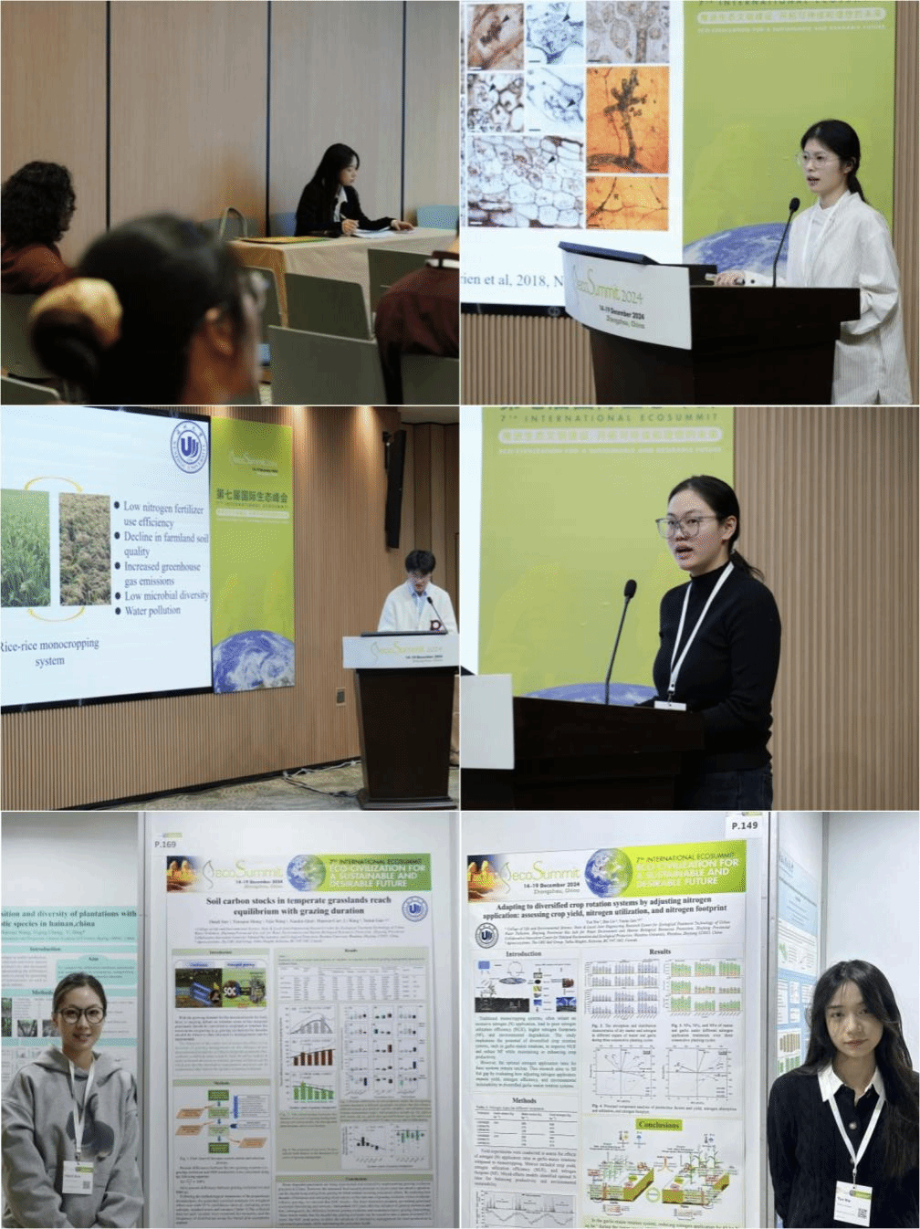 孙丹迪和聂云同学海报题目分别为“Soil carbon stocks in temperate grasslands reach equilibrium with grazing duration”和“Adapting to diversified crop rotation systems by adjusting nitrogen application: assessing crop yield, nitrogen utilization, and nitrogen footprint”。