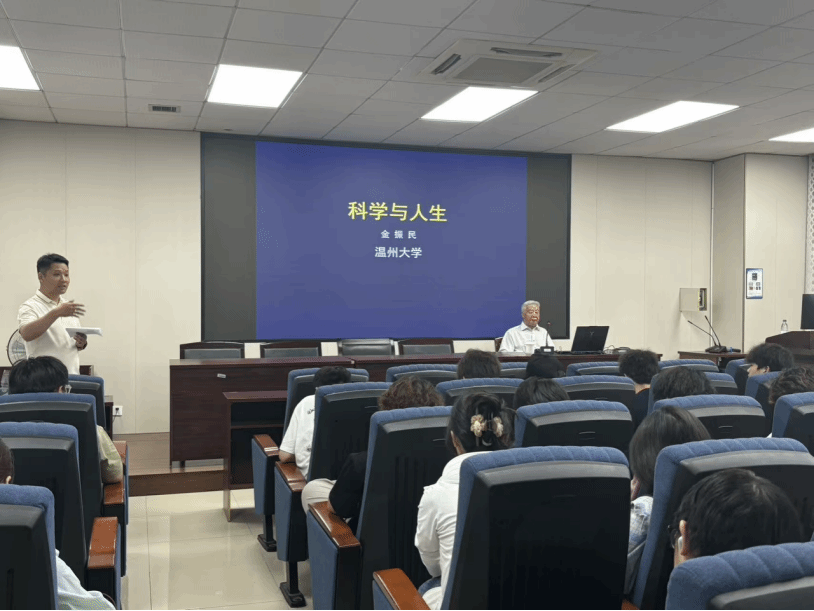 2025年5月27日下午,永利集团官网于10B-202开展科学讲座。公司2024级生物科学专业全体同学以线下形式参与此次活动。本次讲座特邀中国科公司院士、永利集团官网金振民教授作为主讲嘉宾,由公司副经理陈斌斌主持。讲座以“科学与人生”为主题,聚焦知识传递,通过分享学习经验与个人成长历程,为同学们搭建起深入了解科学、感悟人生的学习平台。