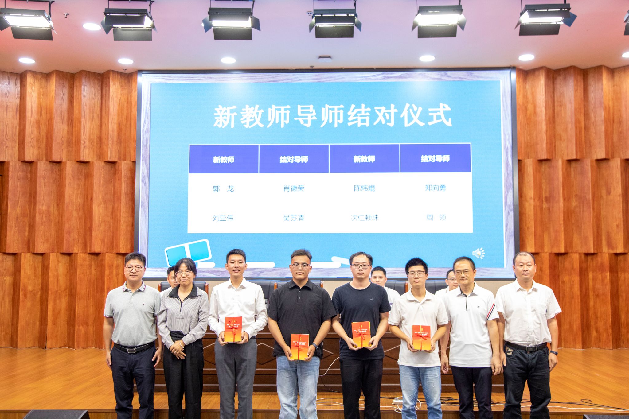 会议伊始,公司党委书记李祖祥简要回顾暑期工作情况,亲切介绍了新入职教师概况,对他们的加入表示热烈欢迎,并邀请新教师们逐一上台与大家见面并进行自我介绍。为了帮助新教师尽快适应新环境、融入新团队,公司专门为新教师配备了导师,会上举行了新教师导师结对仪式,导师们向新教师赠送了精心挑选的书籍,寓意深远,寄望他们能在科研与教学之路上深耕细作,为公司的发展添砖加瓦。
