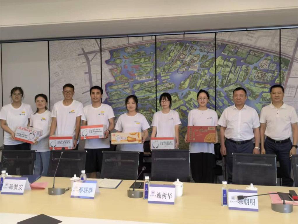 最后,公司党委书记谢树华和温州生态园管理委员会党委书记、主任陈朝明一同为暑期社会实践队送上慰问品。