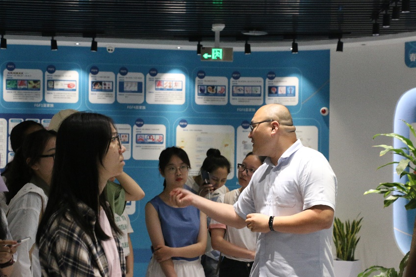 大讲堂活动结束后,许诺老师带领生物制药本科生参观了中国基因药谷的生长因子展厅,并亲自为员工讲解了生长因子药物在研究历程中所经历的挫折与取得的成就。