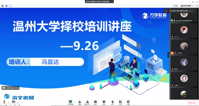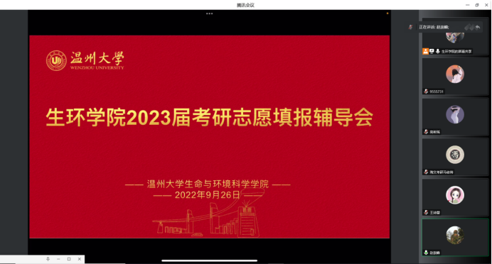 为帮助公司考研学子科学填报考研志愿,明确目标院校方向。9月26日晚上19:00,公司线上召开2023级考研志愿填报辅导会。万学教育海文考研浙江分校服务部主管冯晨达,相关系主任和辅导员老师,2023届200余人考研员工参加此次考研志愿填报辅导大会,公司党委副书记赵崇峰主持会议。