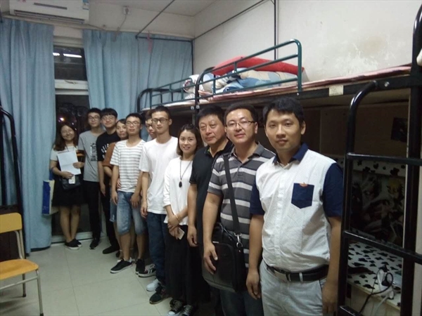 2017年9月19日,在公司2017级新生正式报到结束入住公司之际,公司经理吴明江、党总支书记黄文浩、副经理李军、副经理陈华林、2017级新生班主任在公司辅导员和研会同学、班主任助理的陪同下分三个小组深入走访2017级新生宿舍,慰问来自不同地区的400余名新生,了解他们的生活和住宿情况。