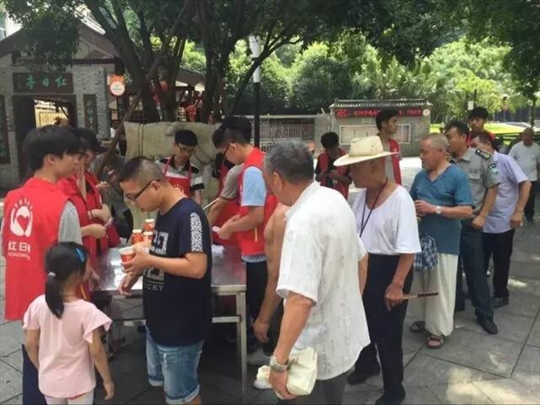 下午,公司老师又辗转到五马街道的三乐亭义工站慰问了蒲公英志愿者社会暑期实践队。志愿者们在伏茶点为居民制作凉茶,发放凉茶。孙老师对志愿者们在高温酷暑的情况下依然认真工作的态度表示了肯定和赞赏,并感谢三乐亭义工基地为老员工提供锻炼自我的平台。随后孙老师详细询问了志愿者们的住宿和餐饮情况,叮嘱志愿者们确保活动期间的身体健康和人身安全。