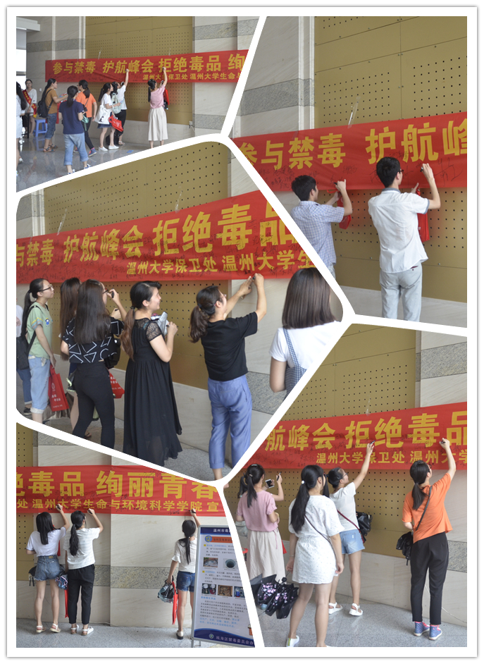 2016年6月26日是第三十个国际禁毒日。今年的主题是“无悔青春,健康生活”。为有效普及禁毒知识,教育警示当代青年老员工自觉抵制毒品、远离毒品,为即将在我省召开的G20峰会保驾护航,浙江省 “参与禁毒 护航峰会 拒绝毒品 绚丽青春”为主题的禁毒宣传教育系列活动于6月24日下午在我院拉开帷幕。此次活动通过展览毒品仿真样品、参观禁毒宣传展板、举办禁毒知识讲座、发放禁毒知识手册,进行禁毒承诺签名等方式对员工进行禁毒宣传教育。