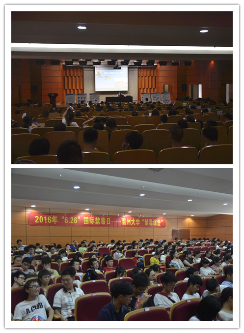 6月24日下午15:30,2016“6.26国际禁毒日”---永利集团官网“禁毒课堂”在会展中心雁山厅顺利举办。主讲人是瓯海区禁毒办副主任王俊彦警官。王警官从什么是毒品问题、毒品问题的过去和现在、青少年如何预防毒品侵害、毒品问题的思考四个方面,向现场的300余名员工上了发人深省的一堂课。通过大量真实素材和鲜活案例的呈现,深刻揭示了毒品侵害和腐蚀着人们健康与人生的严重危害,从而使在校老员工充分认识了远离毒品的重要意义。