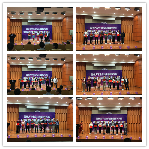 陈华林副经理宣读表彰文件。他希望获奖同学再接再厉,再创佳绩,也希望全院同学以他们为榜样,勤奋学习,立志成才。陈耀兴总经理为5名获得成才励志奖的同学颁发了证书及奖金。成才励志奖的获得者均是班级中学习勤奋努力,成绩优异,综合素质高的同学。陈华林副经理、周茂洪老师、陶月良老师为27名获得学习成就奖的同学颁发了证书和奖金。他们是今年考取了国内外高校硕士研究生的毕业班同学。南旭阳老师、周化斌老师为获得科技创新奖的16个团队个人颁发证书及奖金。科技创新奖是为了表彰在全国及全省各类科技竞赛中获得优异成绩的团队和个人。