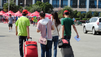 9月9日清晨6点整,公司的迎新工作小组早已准备就绪,按照既定的安排全面开展迎新工作。在接待点,我们设置了志愿者服务岗、党员服务岗、绿色通道等多个岗位。在烈日骄阳下,现场组的每个同学都坚守在自己的岗位上,报到工作有条不紊的开展着。负责帮助新生搬运行李的志愿者不断往返员工宿舍和公司报到处,汗流浃背亦无暇顾及,每来一位新生,大家都争先恐后地前去帮忙。公司党总支张丽萍书记、新生班级班主任及公司辅导员金海艳老师也早早来到现场,为有疑问的新生细心解答,亲切指导、贴心的和员工家长交流,为员工家长解答疑难,让员工家长安心、放心……处处热情流动,微笑荡漾。