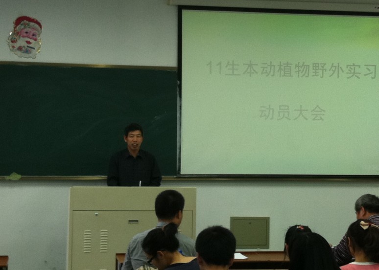 2012年5月4日中午12:30,11生科植物学、动物学野外实习动员大会在南11A201教室召开,教学副经理董新姣、生物科学系主任林国栋、负责本次实习的丁炳扬、胡仁勇、敖成齐、柳劲松、张永普等教师及11生科班主任陶月良老师、教学科赵燕老师等参加了会议。会议由赵燕老师主持。
