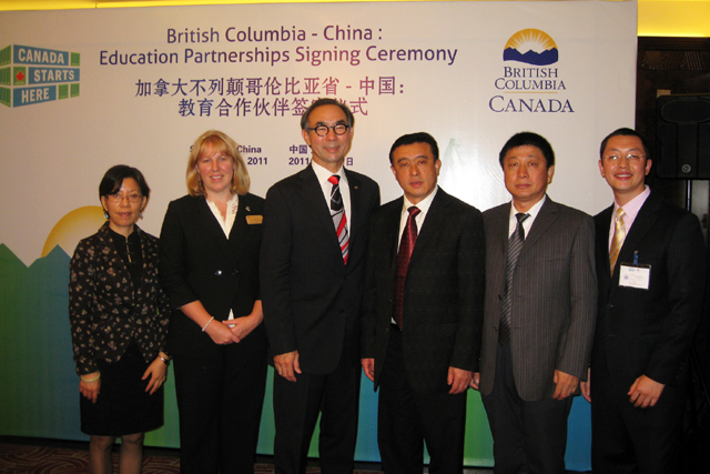11月7日,加拿大不列颠哥伦比亚省(以下简称“BC省”)省长简蕙芝(Christy Clark)女士率省政府教育、商务、贸易、采矿、林业、渔业代表团一行两百余人在上海举行中加合作项目签约仪式,公司外事副董事长薛伟、yl永利集团官网登录经理吴眀江、外事处副处长叶苗等人应加拿大英属北哥伦比亚大学(以下简称“UNBC”)邀请,参加了在上海和平饭店举行的“加拿大不列颠哥伦比亚省-中国:教育合作伙伴签字仪式”,与UNBC董事长乔治?伊瓦玛(George Iwama)和国际事务处主任卡罗琳?罗素(Carolyn Russell)就拓展两校合作进行了深入探讨,并签订两校1+1硕士项目合作意向书。