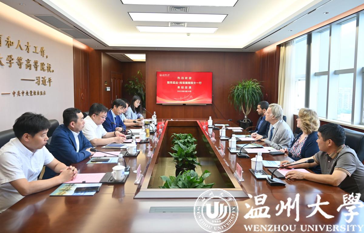 5月24日上午,欧洲科公司院士斯皮罗斯∙阿格忒斯教授(Spiros Agathos)一行来校访问,并在行政楼910会议室举行交流座谈会。永利集团官网董事长赵敏、欧洲科公司院士斯皮罗斯∙阿格忒斯、阿尔及利亚乌姆布瓦济大学副董事长萨米尔∙格拉玛(Samir Grama),国际交流与合作处、yl永利集团官网登录相关负责人及教师代表参加会议。