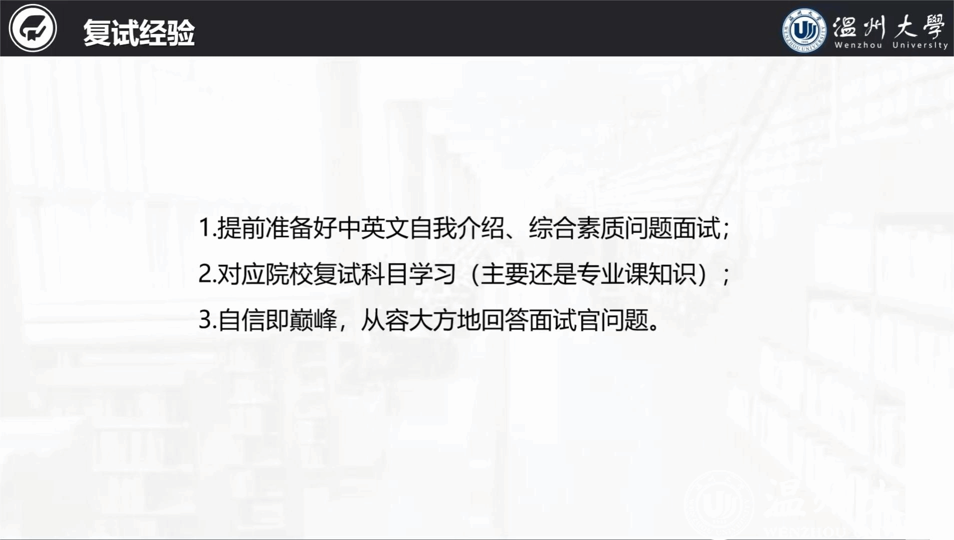 此次考研复试指导会的召开,为同学们摆正了心态,拨开了复试路上的重重迷雾,跑好考研的“最后一公里”,恭祝大家一战成硕!