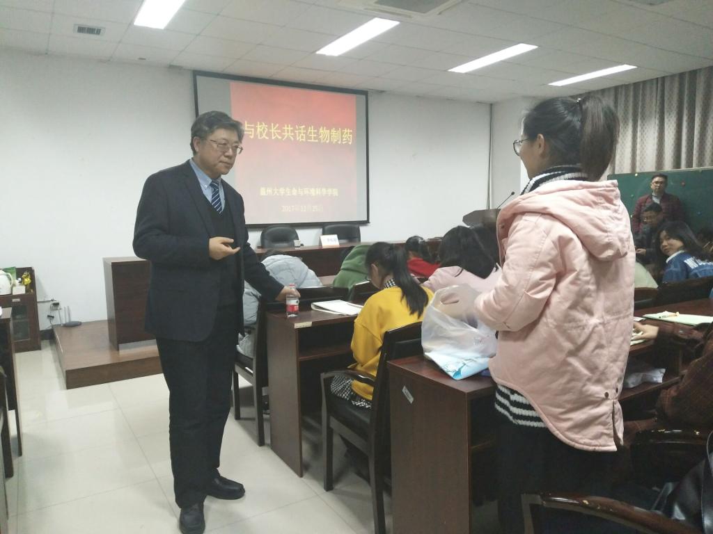 站在巨人的肩膀上,让世界知道有温州,有永利集团官网,有yl永利集团官网登录,有yl永利集团官网登录的我们!李董事长的结束语充满着对我们生物制药同学的期待,也更激励着我们生环学子不断挑战和攀登科学的高峰。