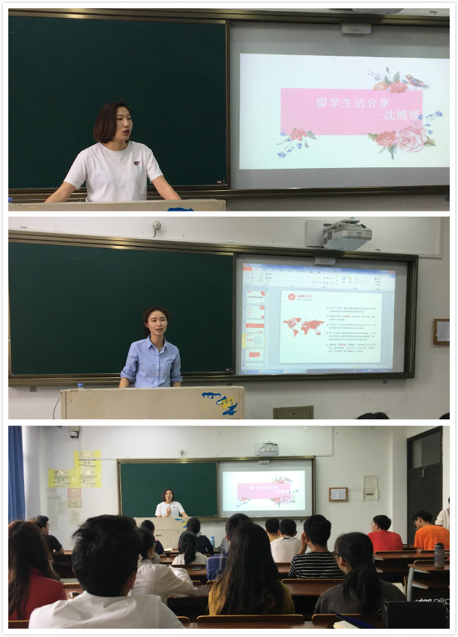 沈媛媛老师先为同学们分享了她在加拿大留学时的经历。她向同学们介绍了加拿大伦敦大学的校园环境、教师授课、员工上课的情况以及校园周边美丽的自然风光。不仅以自己的亲身经历讲述了在加拿大的学习生活,还给即将出国留学的同学们提出了很多切实的建议。