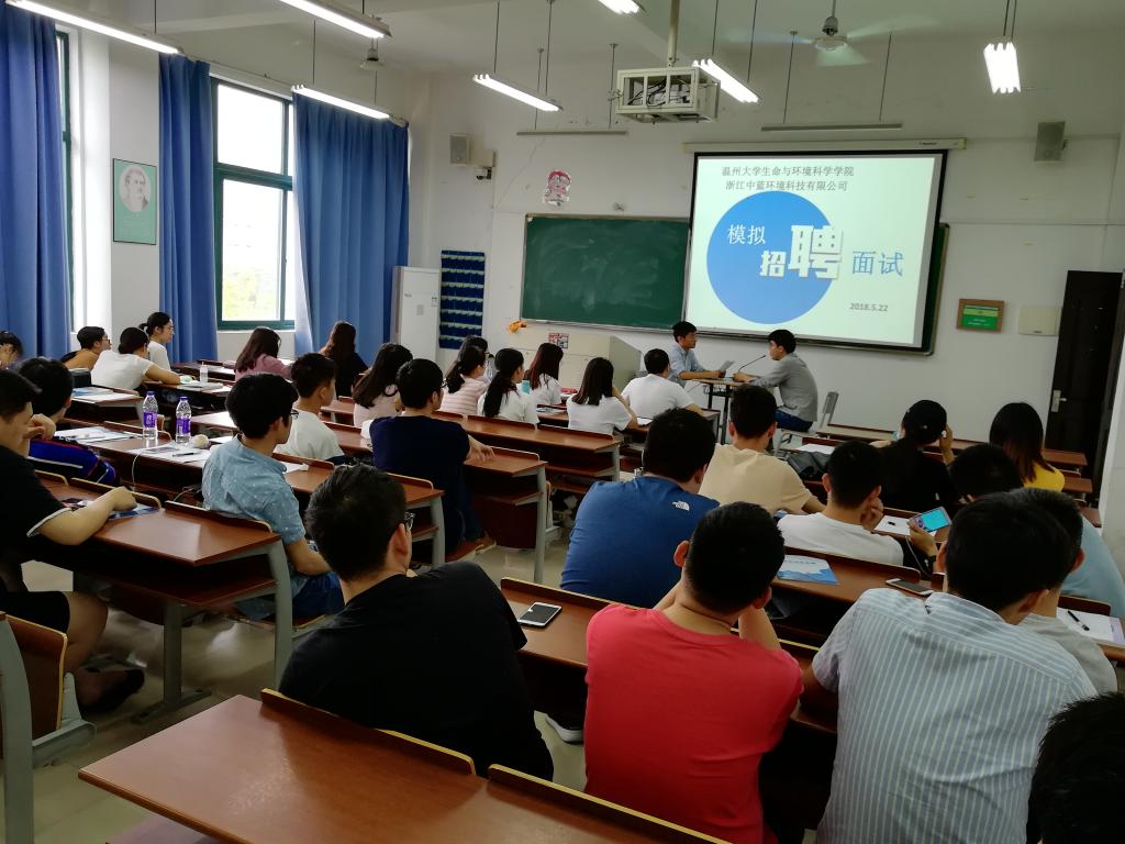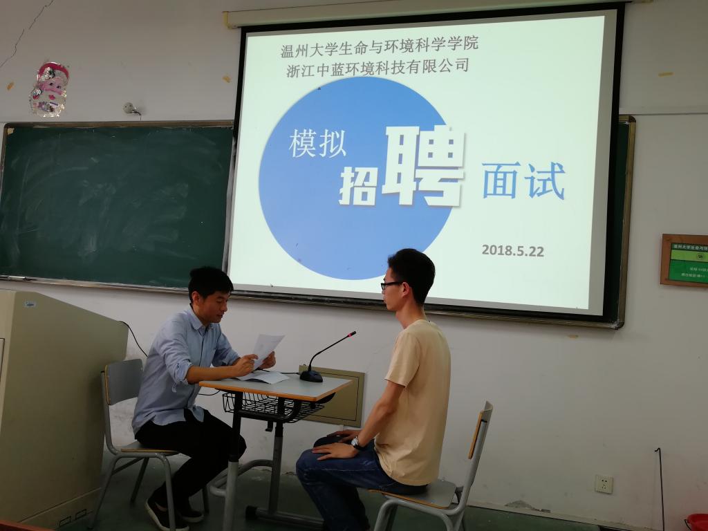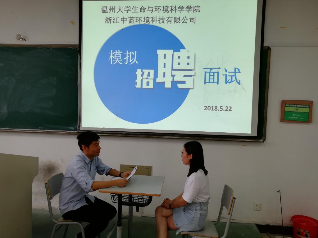 为提高2015级环境科学专业同学的求职面试技巧,增强职业规划意识,5月22日上午yl永利集团官网登录在11B201教室举行了模拟面试活动,邀请浙江中蓝环境科技有限公司总经理助理、高级工程师徐跃先生担任主面试官,5位同学担任助理面试官。