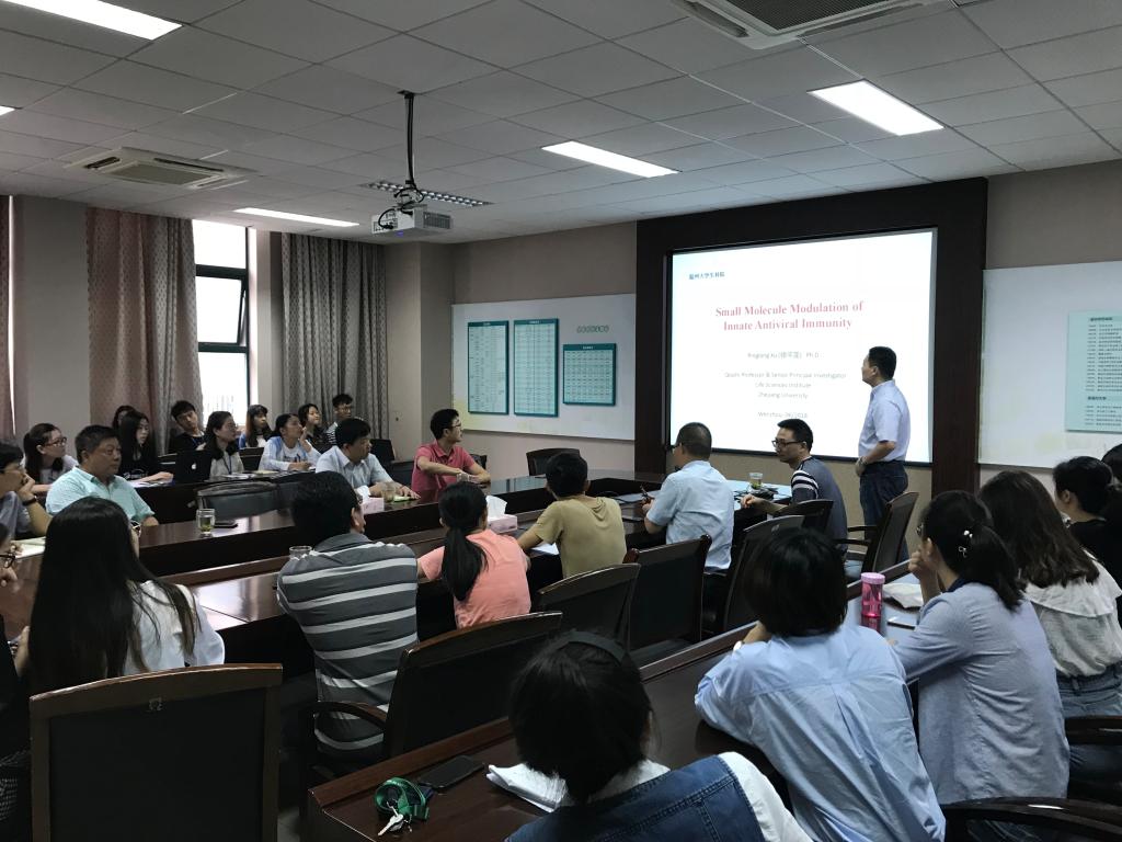 讲座结束后,两位教授和到访的其他教授与师生一起座谈,大家就“抗病毒天然免疫”、“细胞极性与发育”等多个当今热点研究领域进行热烈讨论,座谈会气氛热烈。各位教授均在自身领域有较好成果,其科研思路、创新思维对广大师生的科研工作具有极大的启发借鉴作用。