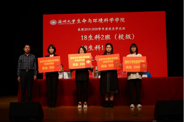 大会的第二项议程——对公司先进的班级集体和个人进行表彰。在过去的一学年中,同学们都刻苦学习、认真钻研,各班级也重视学风建设工作,取得了不错的成绩。其中,也涌现出了许多优秀的班集体和个人。18生科2团支部和18生物制药团支部在浙江省第二届高校团支部风采大赛中获得全省高校优秀团支部称号。2019-2020学年度优良学风班为18生科2班、18生科1班、18生物制药和18环境科学,其中,18生科2班为校级优良学风班。2019-2020学年度国家奖学金获得者为赵青青。2019-2020学年度学习标兵为赵青青、陈政帆、赵意能、章伟男、杨阳、郑奇、汪妹,其中赵青青和陈政帆同学为校级学习标兵。