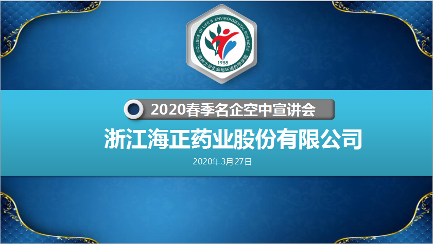 3月27日晚上,公司诚邀浙江海正药业股份有限公司在腾讯会议上为90余名本科生和研究生举办了一场空中宣讲会。会议由浙江海正药业股份有限公司人力资源部主任柏力华担任主讲。
