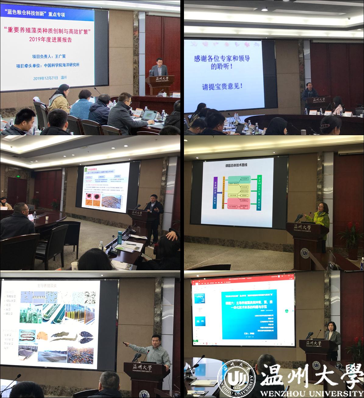 徐和昆副董事长首先介绍了与会领导和专家,并对各位莅临表示热烈欢迎。赵敏董事长代表公司欢迎参会专家,并致辞。在讲话中赵董事长介绍了温州的历史文化、温大办学历史、教学研究型大学的建设目标和方略,以及生态学科的发展情况。中国科公司海洋研究所科研处潘诚副处长对“重要养殖藻类种质创制与高效扩繁”项目做了简要介绍,并介绍了中科院海洋所对该项目的相关支持工作。卢兵友处长围绕专项一体化实施方案,对本项目年度总结纲要和文件精神做了讲解,并对年度总结汇报提出了指导意见。
