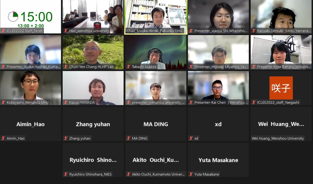 2022年11月19-20日,由日本应用生态工学会主办的“The 12th Conference of International Consortium of Landscape and Ecological Engineering(ICLEE)”国际景观与生态工程联合会议线上线下同时召开。此次会议由来自中国大陆、中国台湾、日本及韩国从事生态学、应用生态学、微生物学、景观学方面的研究专家、学者及职工等,共进行了78场学术演讲与研究报告交流。公司yl永利集团官网登录郝爱民教授课题组陈凯、颜志雄、李平安、黄炜、石小雨5名硕士研究生在河岸环境分会场做了最新研究报告。