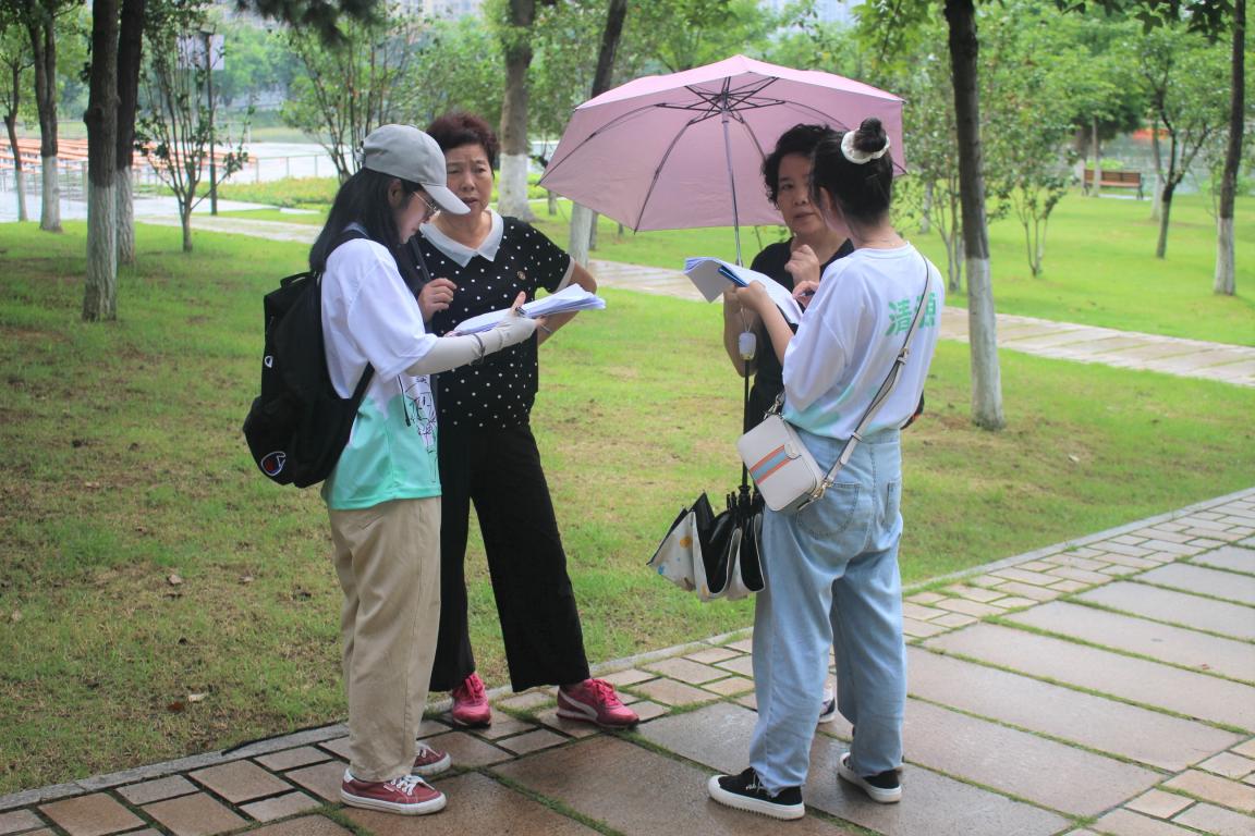 2020年7月10日,“清源”暑期社会实践队的成员们满怀热情,又一次聚集在白鹿洲公园,开展以小组为单位的实践活动。宣传组和团建组继续昨日南大街绿色生活方式规范试点工作成效的调查,实验组进行水样的采取,调研组则进行问卷结果的整理与统计。